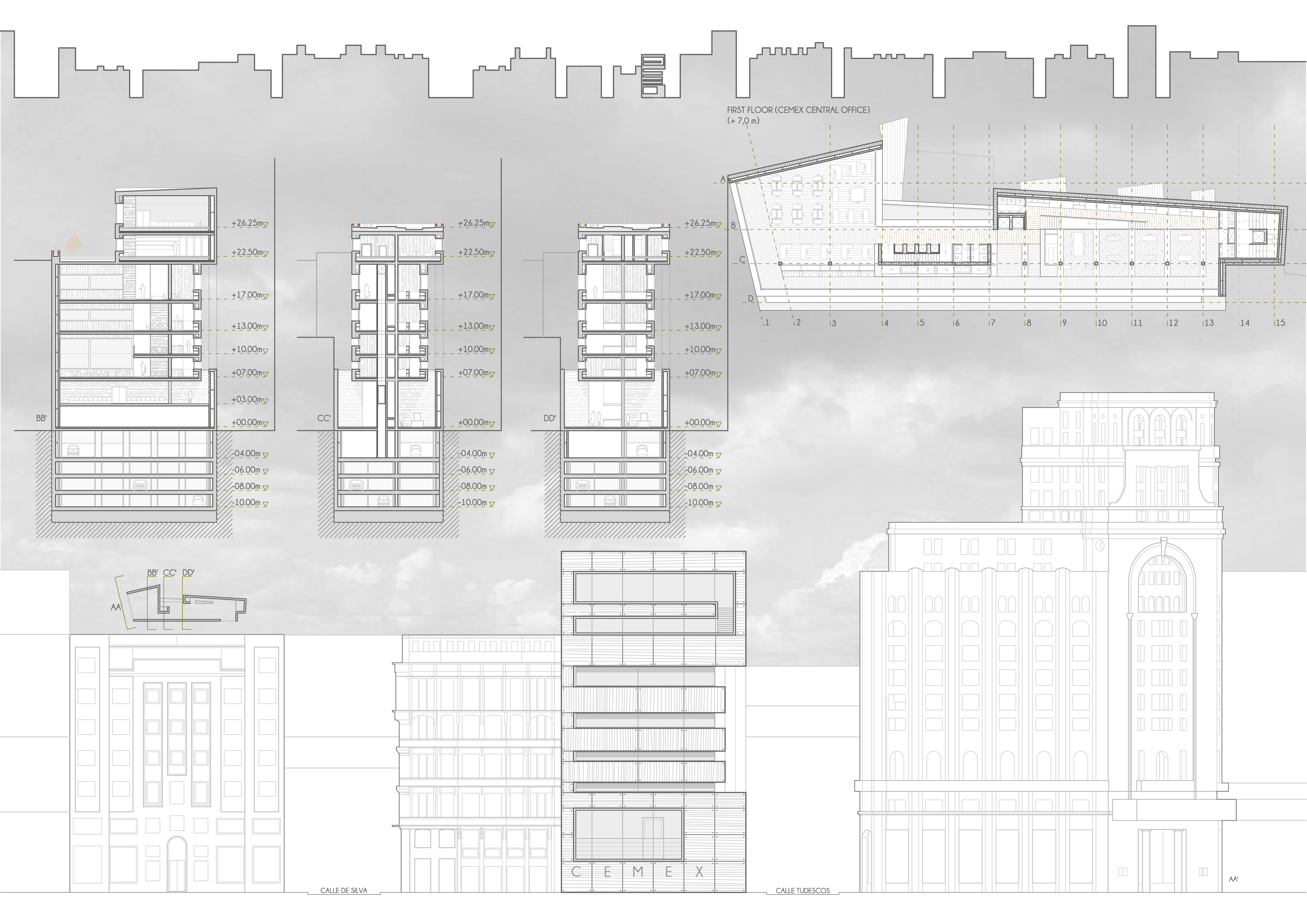 Brief To design the company headquarters for CEMEX, a multinational spanish company specializing in high quality building materials, on one of the most emblematic streets of the city.